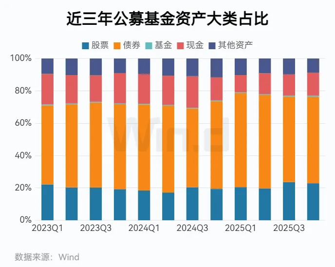 2025年四季度,债券类资产占比升至53.44%,现金类资产占比亦提高至14.27%。