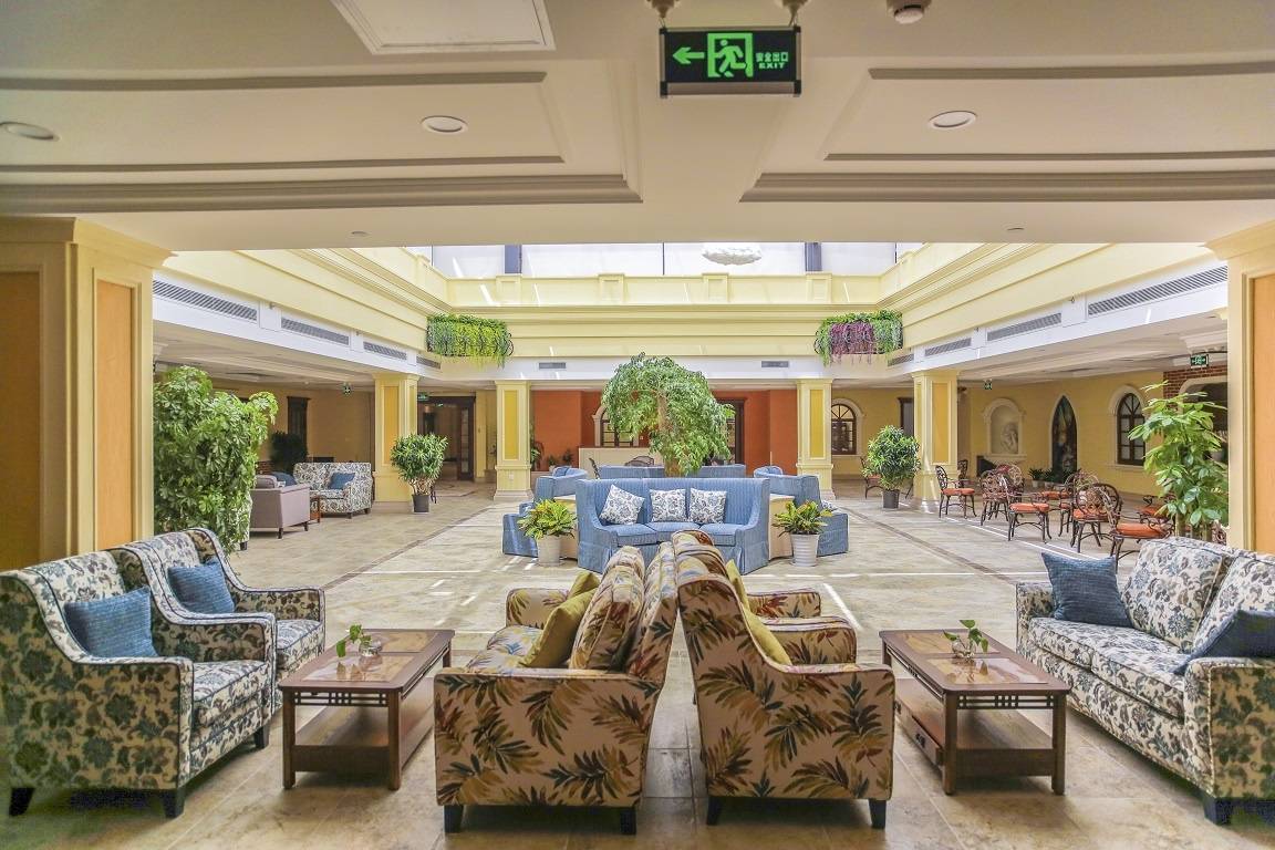 北京市大兴区寿山福海养老服务中心总建筑面积2万平方米,600张床位充足供给,避免床位紧张的困扰。房型面积30-60平方米,空间宽敞舒适,均配备家具、智能家电、无障碍卫浴系统、24小时生活热水与应急呼叫系统,细节处彰显人性化关怀。户外设有景观凉亭、健身道,步行可达康庄公园,日常休闲锻炼、漫步赏景皆适宜;室内配套电影院、多功能厅、书画室、阅览室、电脑室、棋牌室、台球室、健身房、茶室、会客室等,每层居住区均设有公共休闲区,满足长者多元休闲、社交与兴趣需求。