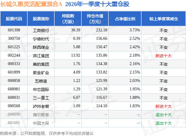 2026-04-25AYX爱游戏,爱游戏体育,爱游戏体育官网,爱游戏APP下载证券之星消息,日前长城久惠灵活配置混合A基金公布一季报,2026年一季度最新规模0.62亿元,季度净值涨幅为-3.52%。